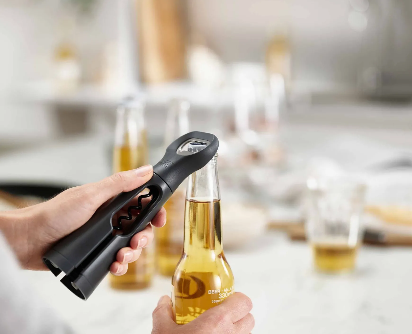 - Three bottle-opening tools in one