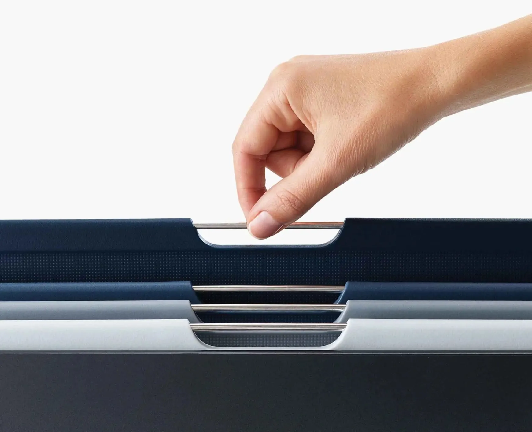 Every great meal starts with a cutting board, so we designed Folio™ to make the food-prep process more efficient and enjoyable. Our cutting board set includes four colour-coded boards with knife-friendly, textured surfaces and non-slip grip feet for safer slicing, cutting and dicing. Stainless-steel bars make it easy to select the board you need from the slim storage case.