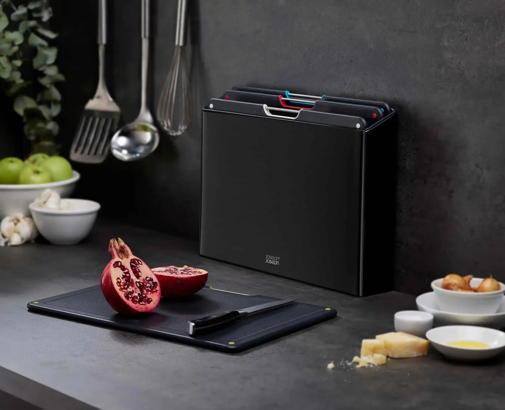 Our 4-piece black cutting cutting board set, Folio™ Steel, is perfect for keeping all your boards organised and easy t…