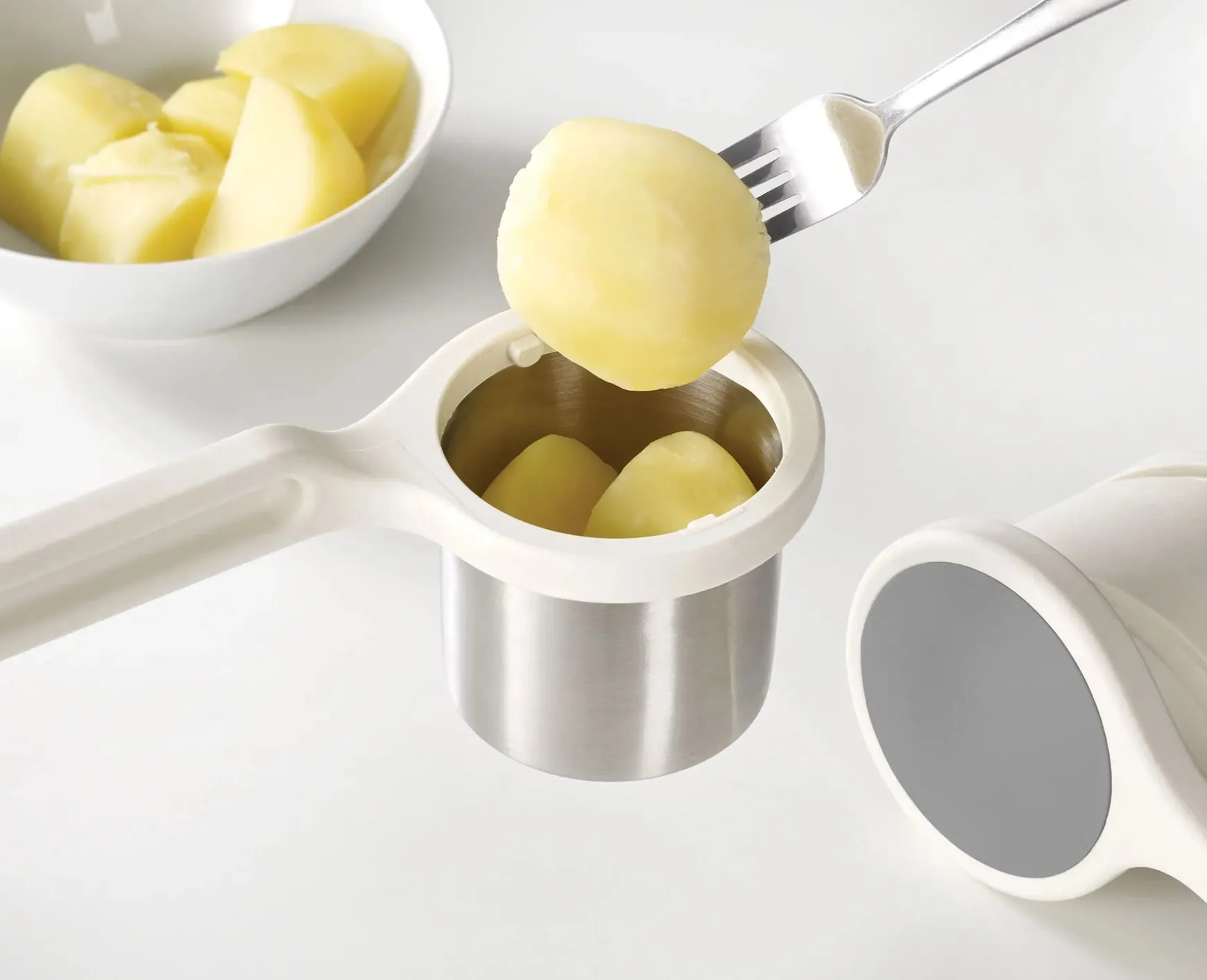 Make perfectly smooth and fluffy mashed potato in seconds with just a twist using this innovative potato ricer.