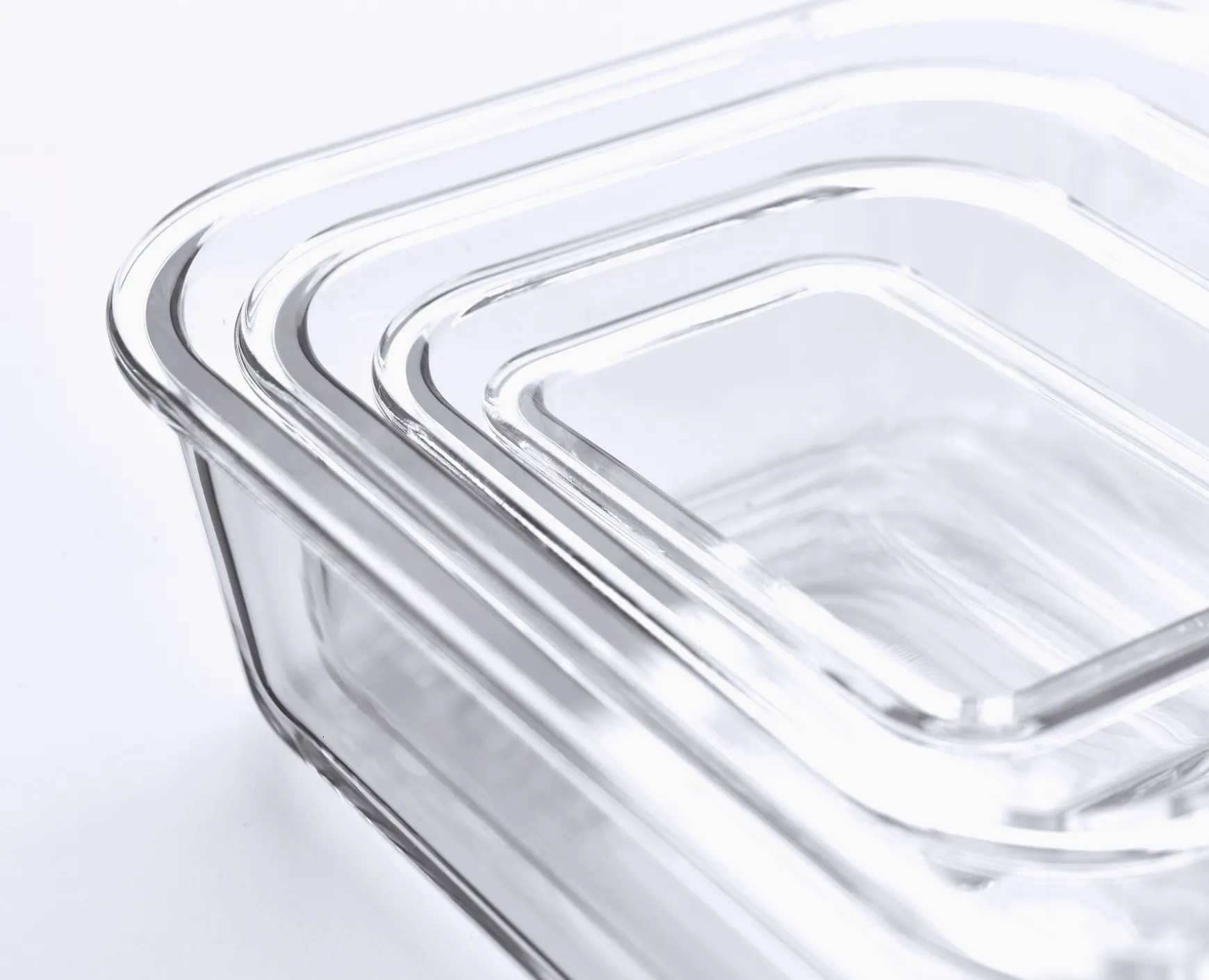 - Tough, borosilicate glass containers