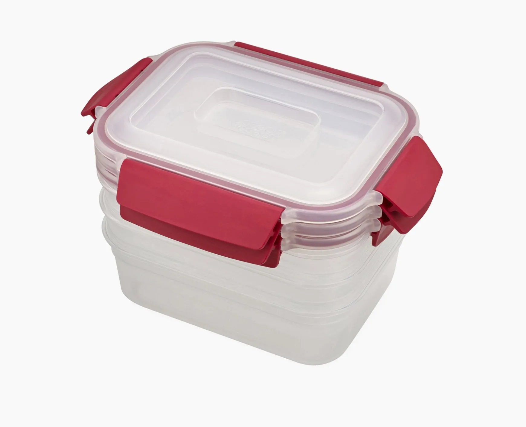 Perfect for leftovers, these sets include three same-sized food storage containers that are 100% leakproof and airtight but also stack neatly inside each other when not in use.