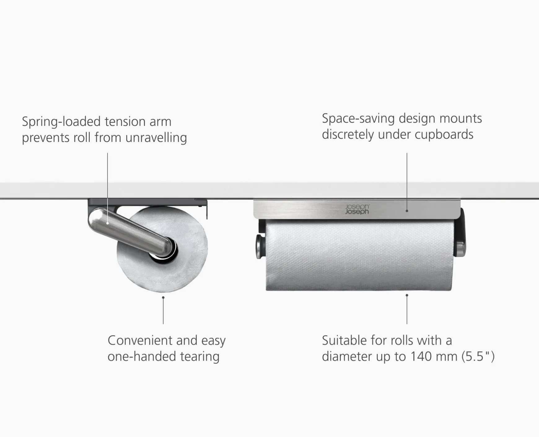 Joseph Joseph RollGrip™ Under-Shelf Paper Towel Holder- Kitchen Countertop Organizers