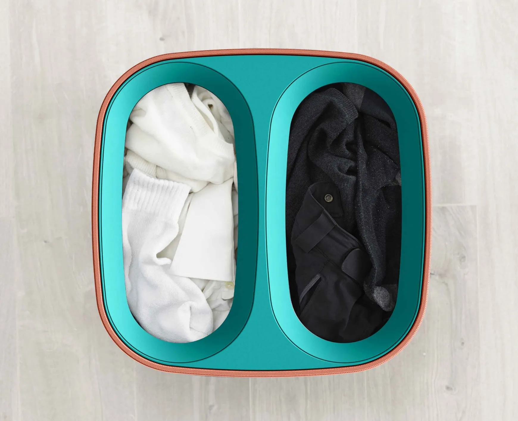 Ready to banish laundry-day blues? Meet Tota, our smart and stylish laundry basket. Designed with dual compartments and removable, easy-carry tote bags, Tota cuts down on the time and energy needed to separate clothes and carry heavy loads to the washing machine. It also looks great in the bedroom, bathroom or utility room.