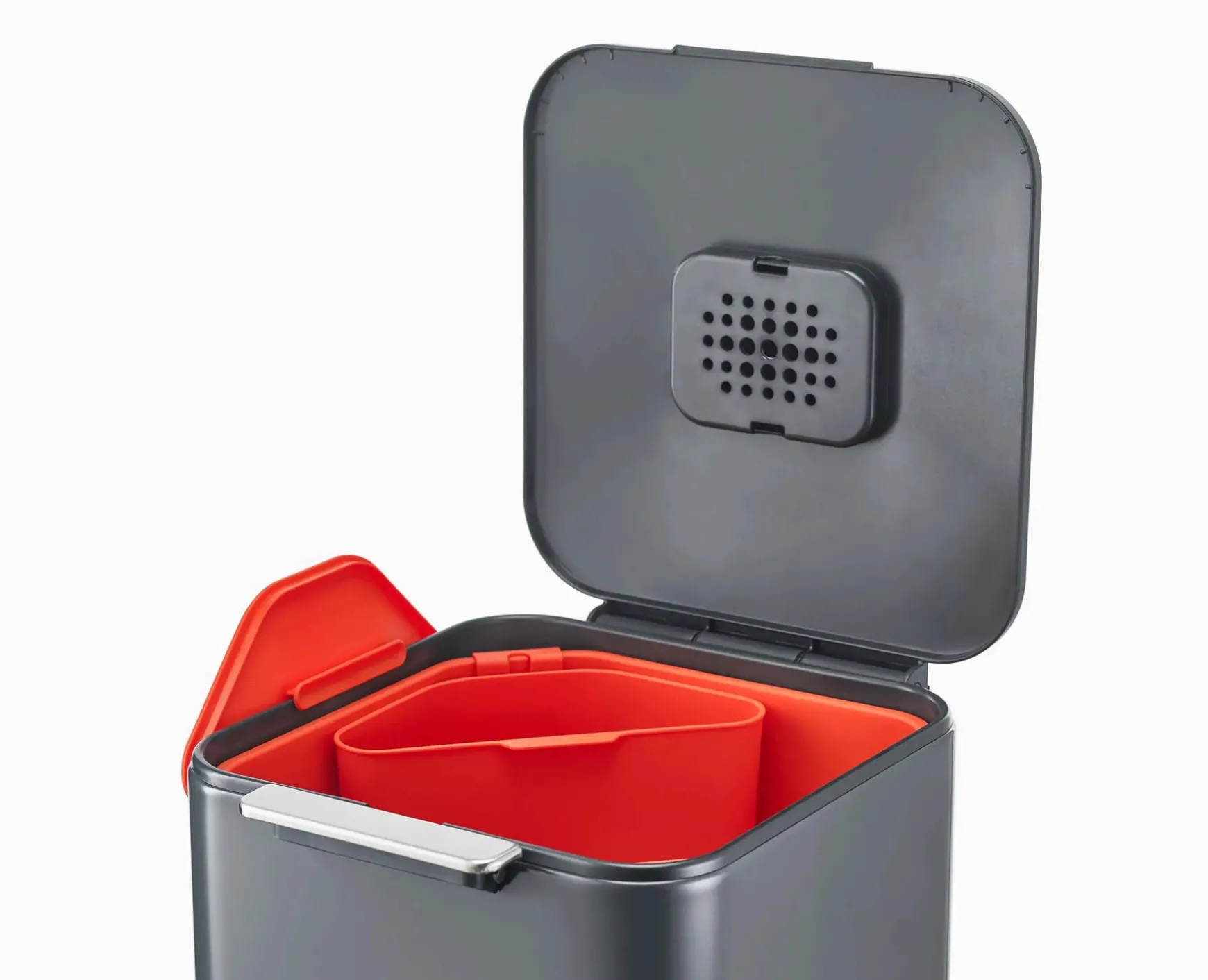 - Includes two 20-litre compartments for easier sorting of waste and recycling plus a 3-litre removable food waste caddy