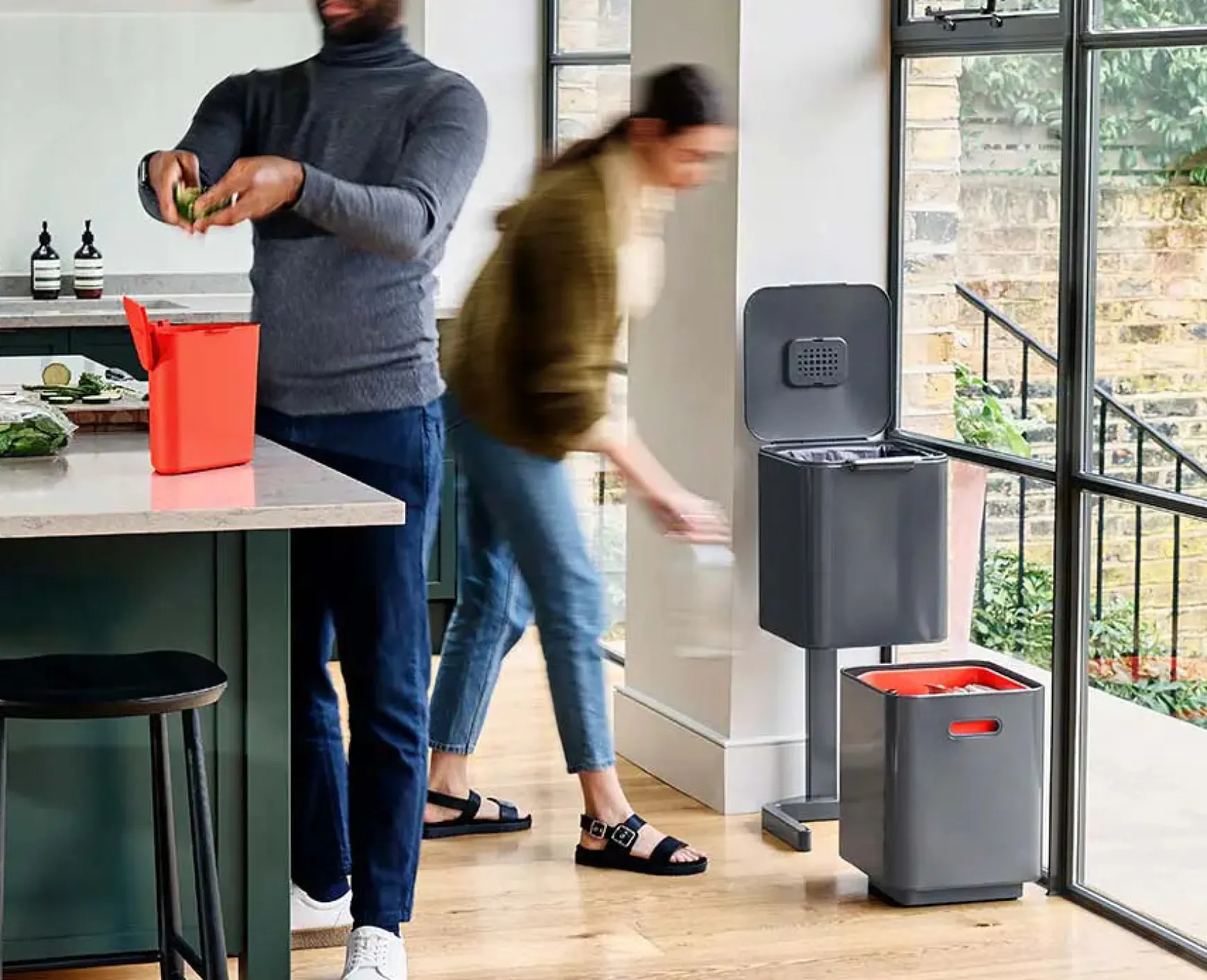 - Includes two 20-litre compartments for easier sorting of waste and recycling plus a 3-litre removable food waste caddy.