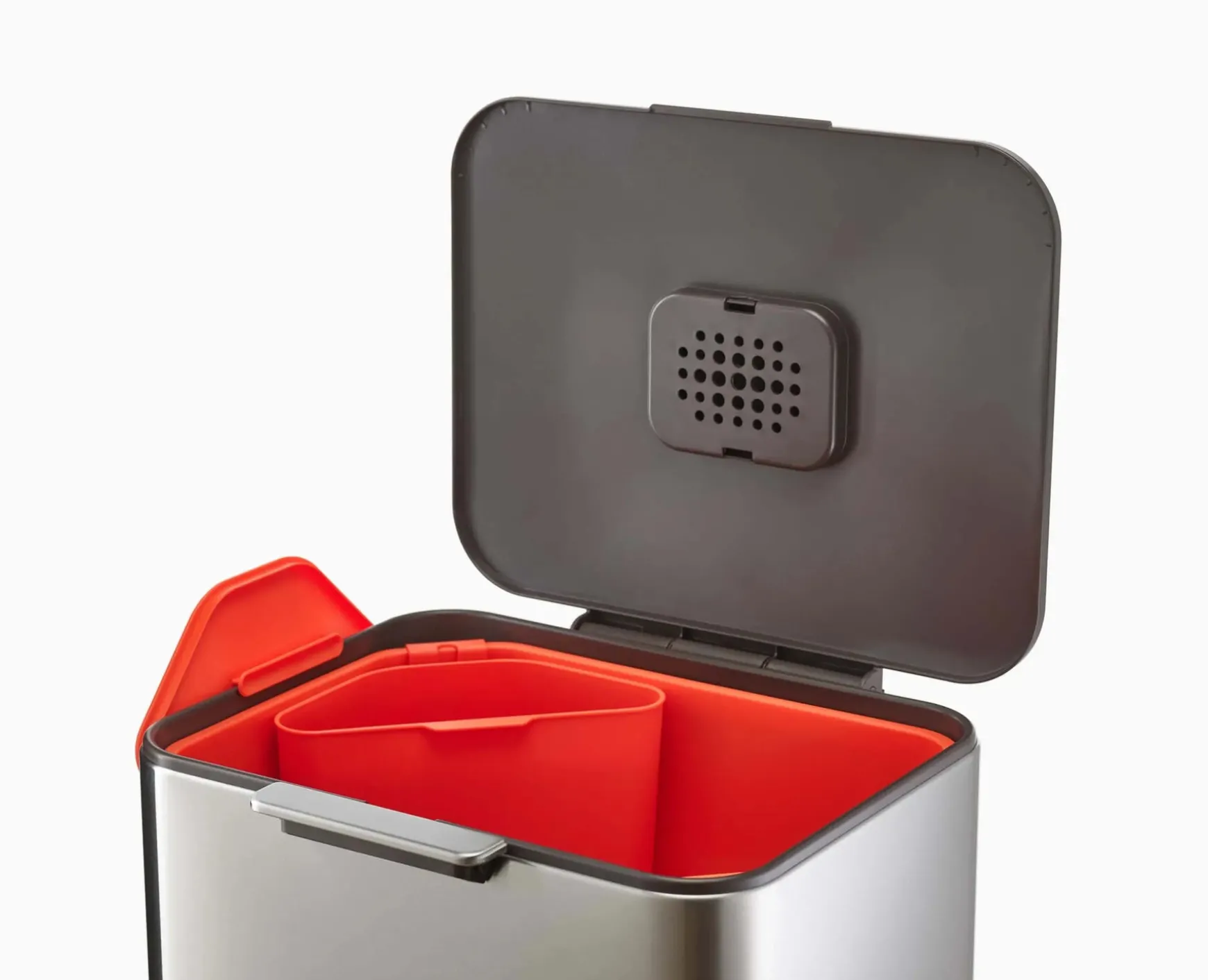 - Includes two 30-litre compartments for easier sorting of waste and recycling plus a 3-litre removable food waste caddy