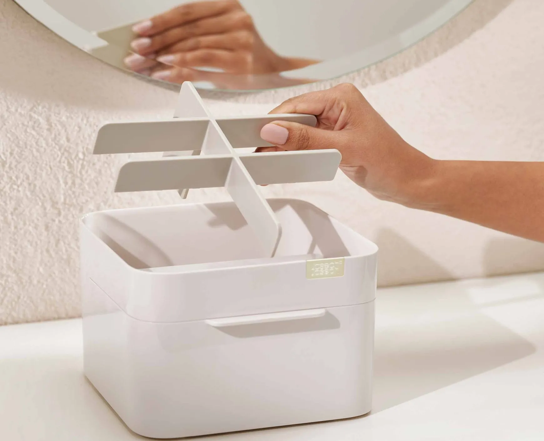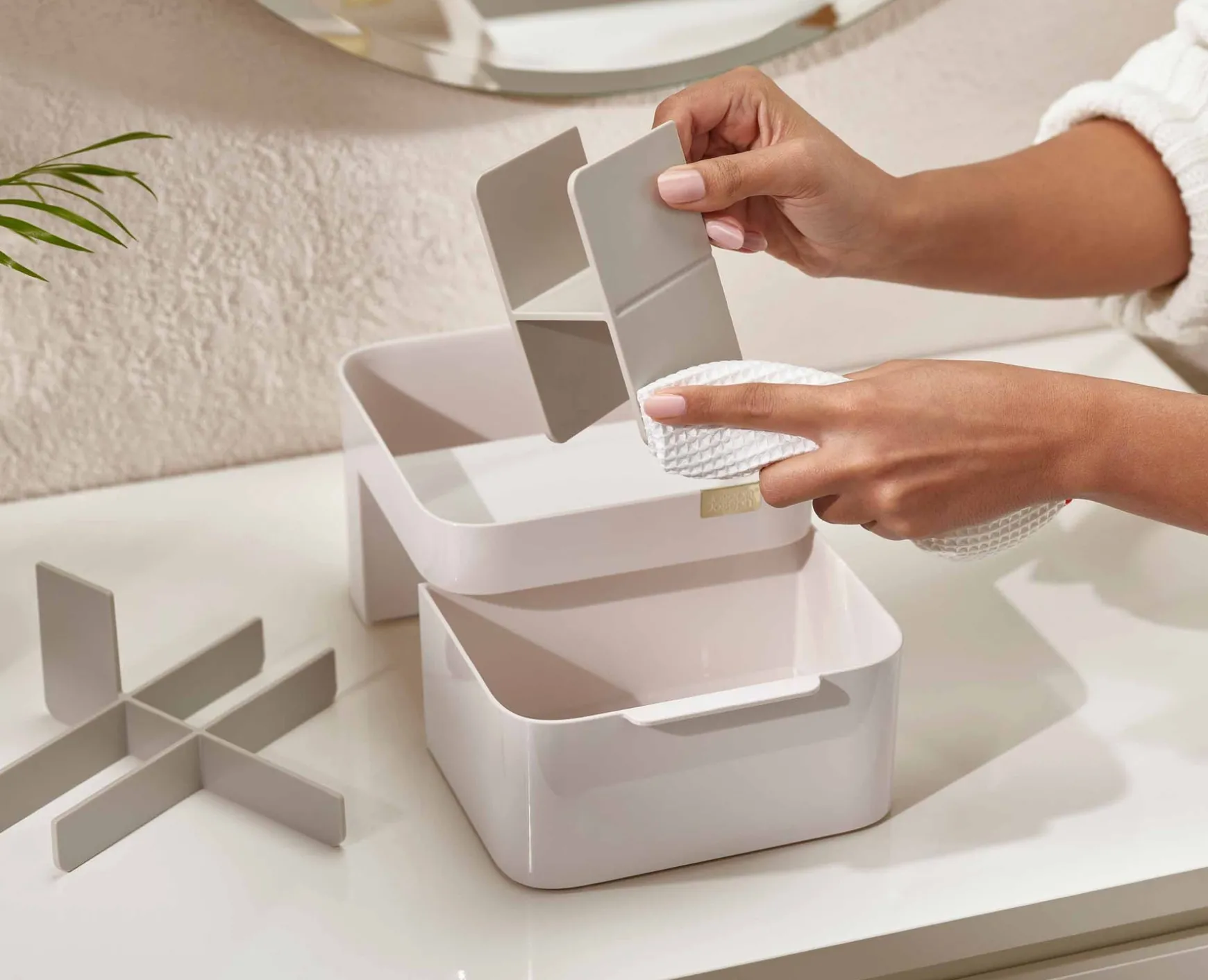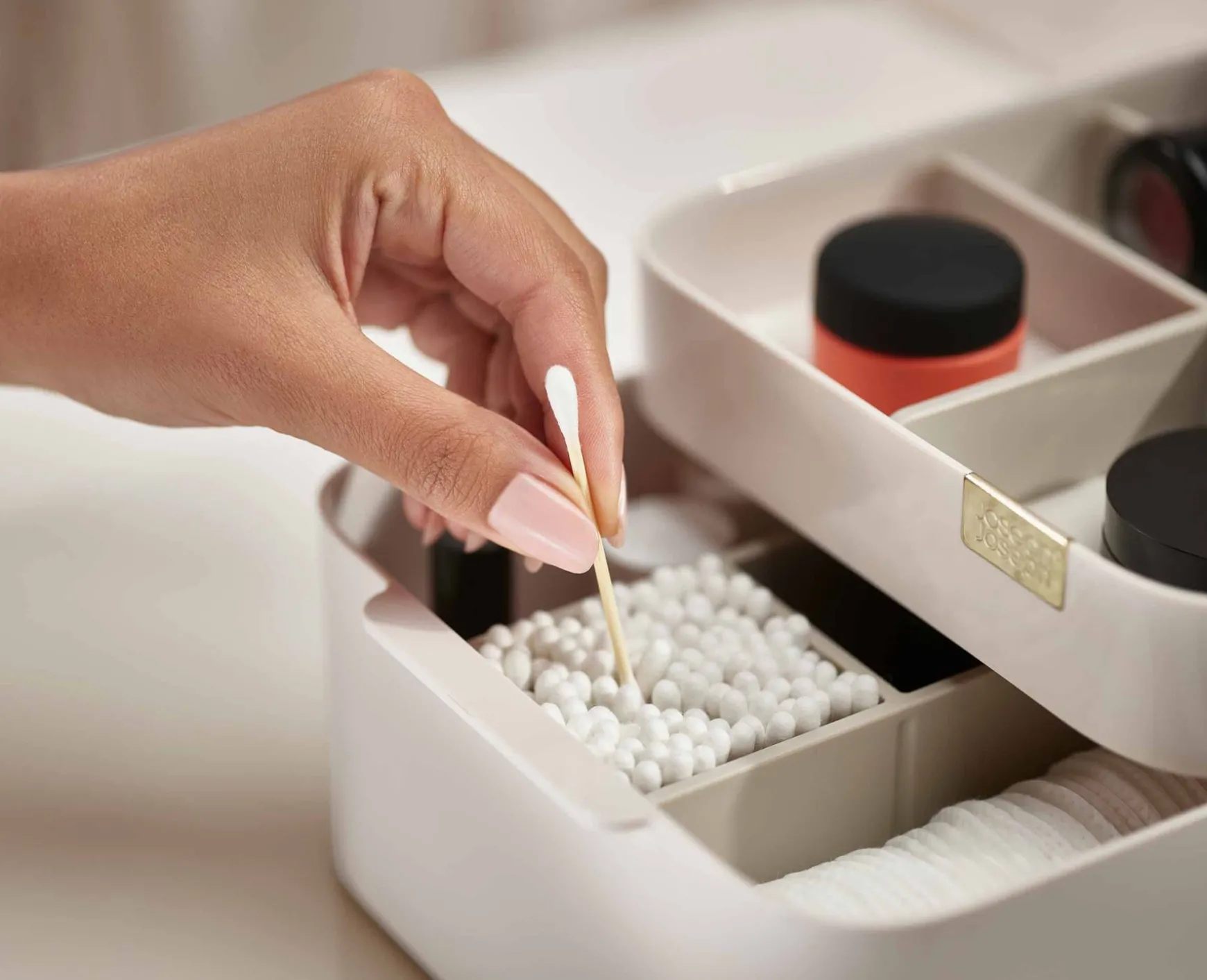 - Drawer with magnetic closure for cotton wool pads, cotton buds and make-up sponges
