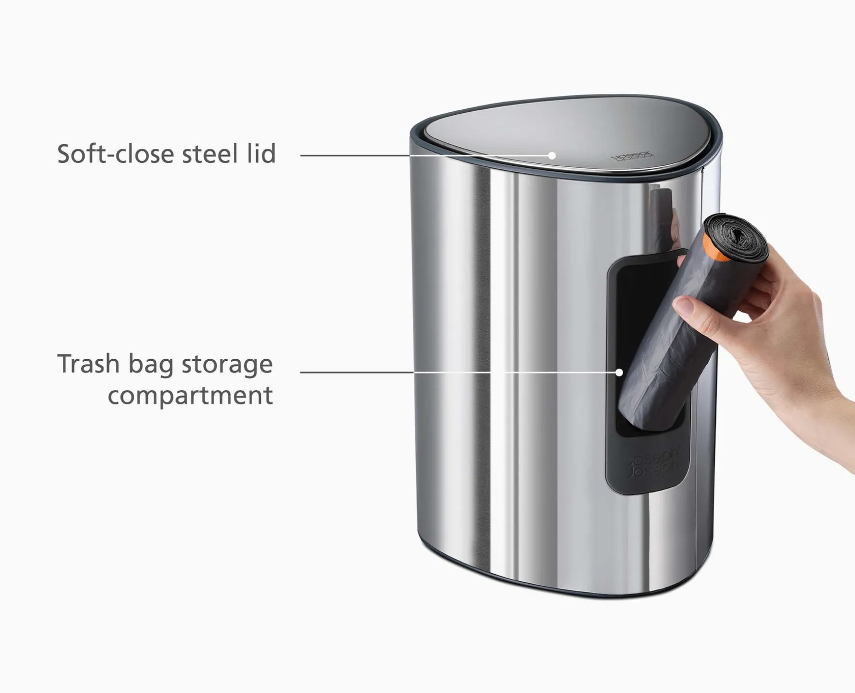 - The pocket on the rear is perfect for storing a roll of Joseph Joseph IW8 custom-fit trash bags (available separately).