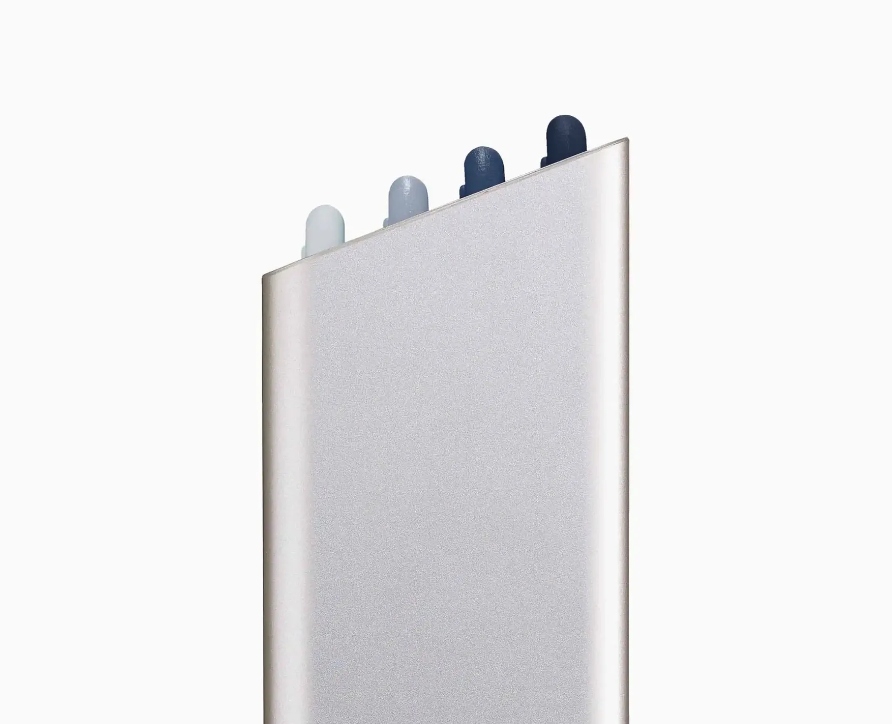 Every great meal starts with a cutting board, so we designed Folio™ to make the food-prep process more efficient and enjoyable. Our cutting board set includes four colour-coded boards with knife-friendly, textured surfaces and non-slip grip feet for safer slicing, chopping and dicing. Stainless-steel bars make it easy to select the board you need from the slim storage case.