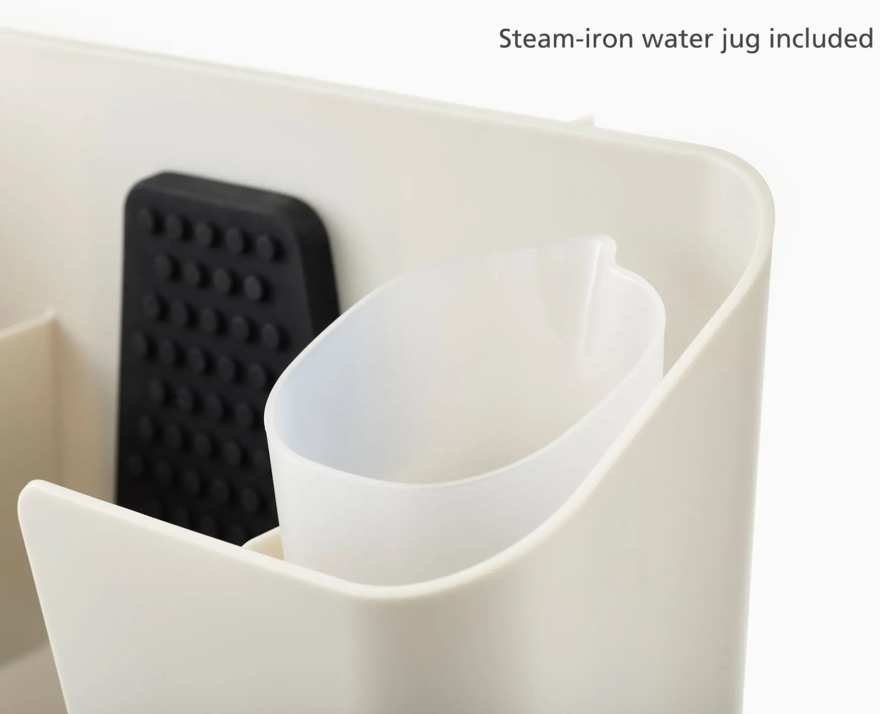 - Includes a 350 ml water jug for filling steam irons with its own storage compartment.