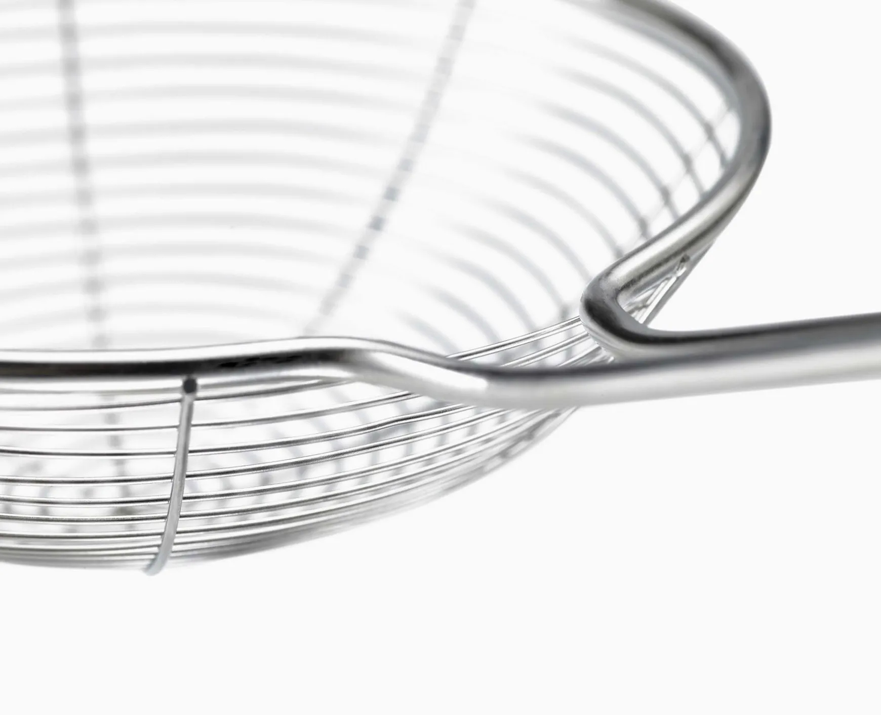 - Wire skimmer perfect for collecting and draining food from hot liquids