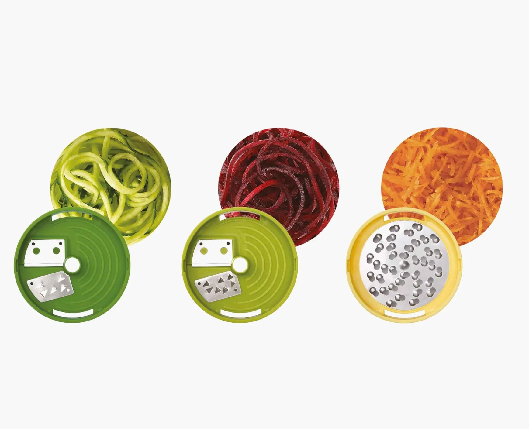 The design of this self-containing spiralizer keeps mess to a minimum collecting food as you cut it and makes spiralizing a whole range of vegetables super neat and easy.